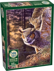 Puzzel Avondjager van het merk Cobble Hill met 1000 stukjes biedt een unieke ervaring dankzij de ongewone vorm van de puzzelstukjes. De gelegde afbeelding meet ongeveer 48,9 x 67,6 cm.