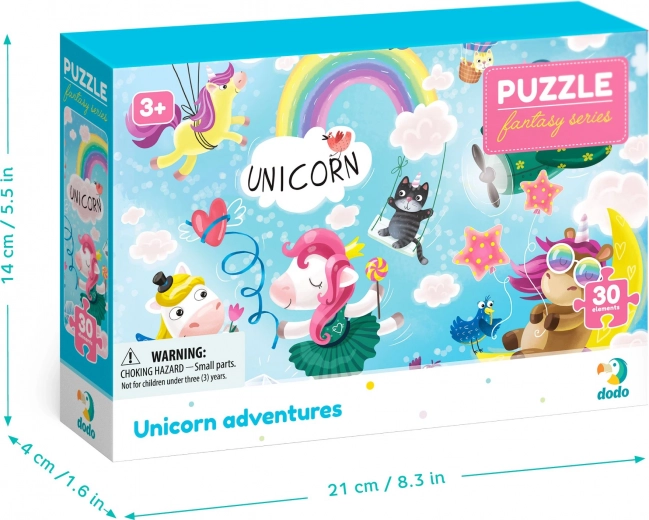 Puzzel Eenhoornavontuur, 30 stukjes, afbeelding 27 x 20 cm. Ideaal cadeau voor kleine sprookjesfans.