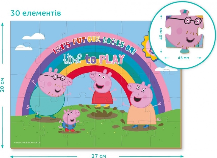 Geniet van leuke momenten met de puzzel Peppa Big: Regenboog met in totaal 30 stukjes. Perfect voor kinderen die van kleurrijke afbeeldingen en een leuke uitdaging houden.