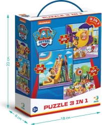 Leuke puzzelset voor alle fans van Paw Patrol, met drie verschillende moeilijkheidsniveaus in één verpakking voor veel plezier en uitdaging.