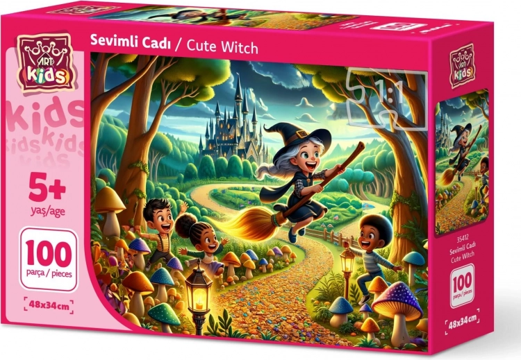 Ontdek het plezier met de puzzel Schattige Heks, die 100 stukjes biedt en alle liefhebbers van puzzelen zal verrassen.