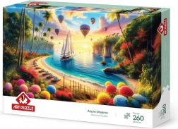 Ervaar een zalig gevoel van voldoening wanneer je het mooie beeld van Puzzel Azuurblauwe dromen stukje voor stukje samenlegt. Met 260 stukjes is deze puzzel ideaal voor zowel kinderen als volwassenen die van uitdagingen en kunst houden.