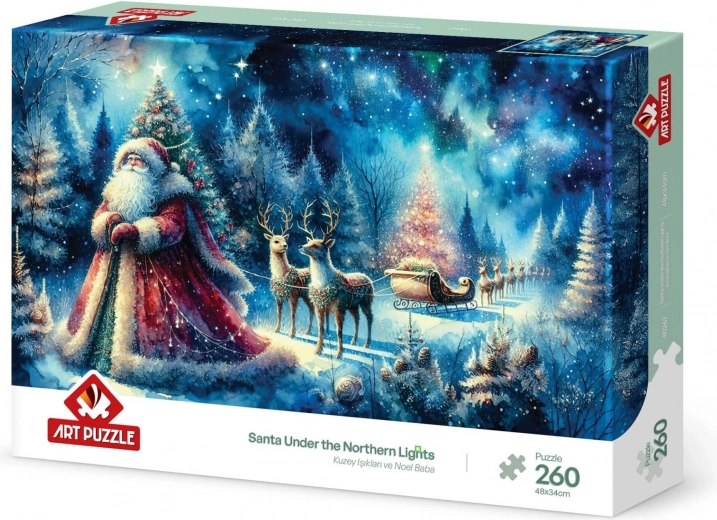 Geniet van de kerstsfeer met de prachtige Puzzel Kerstman onder de Noorderhemel, bestaande uit 260 stukjes. Perfect voor gezellige momenten met het gezin en voor fans van winterse themapuzzels.
