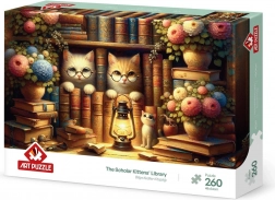 Puzzel met het motief Kattenbibliotheek biedt plezier met 260 stukjes. Maak een prachtig beeld van je eigen kattenbibliotheek thuis. De afmeting van de gelegde puzzel is 48 x 34 cm.