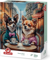 Puzzel Stijlvolle Pootjes is de ideale keuze voor liefhebbers van uitdagend en leuk puzzelen! Hij bestaat uit 260 stukjes en is de perfecte manier om creatief bezig te zijn en tegelijkertijd te genieten van een prachtig beeld met stijlvolle pootafdrukken.