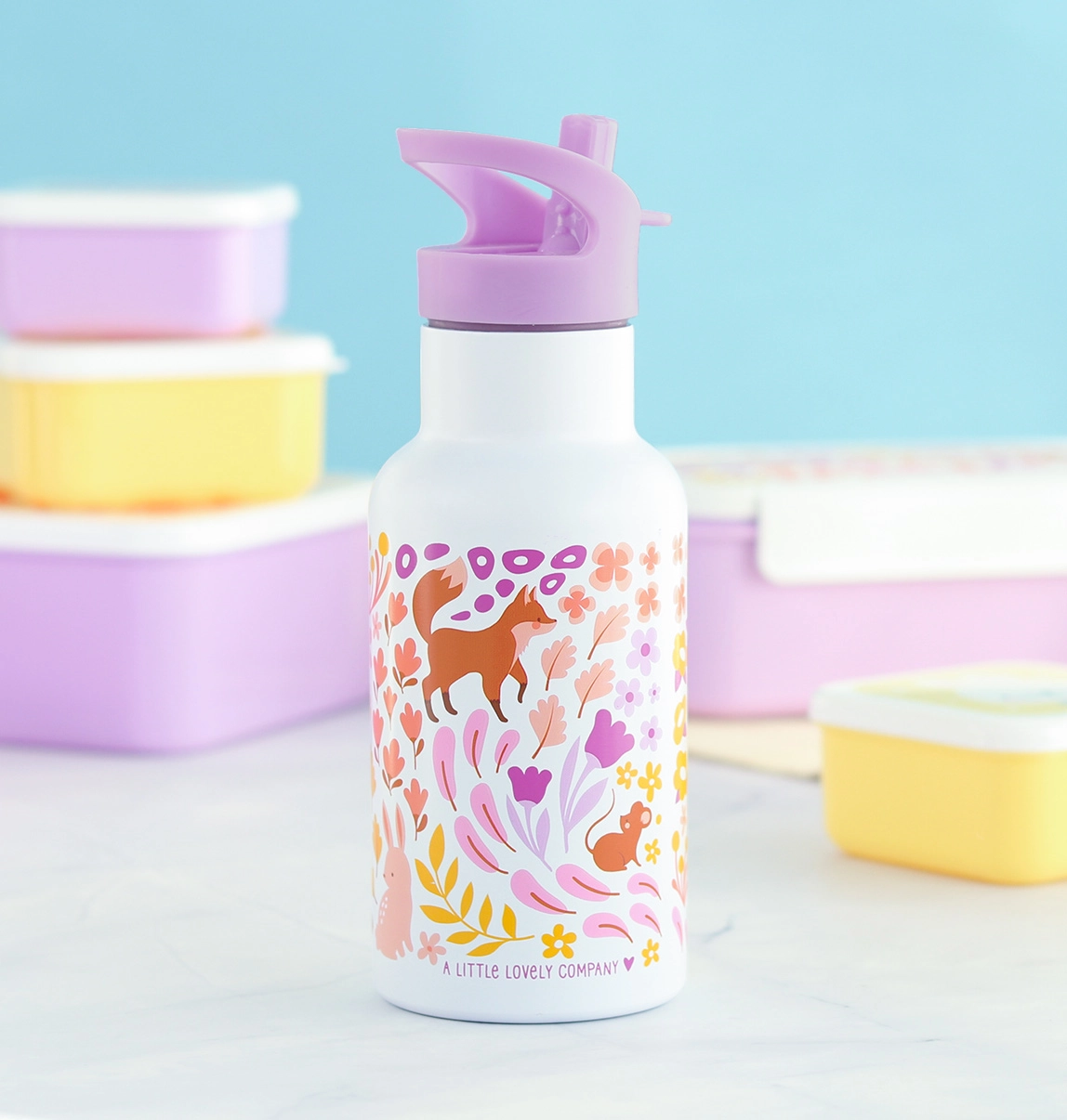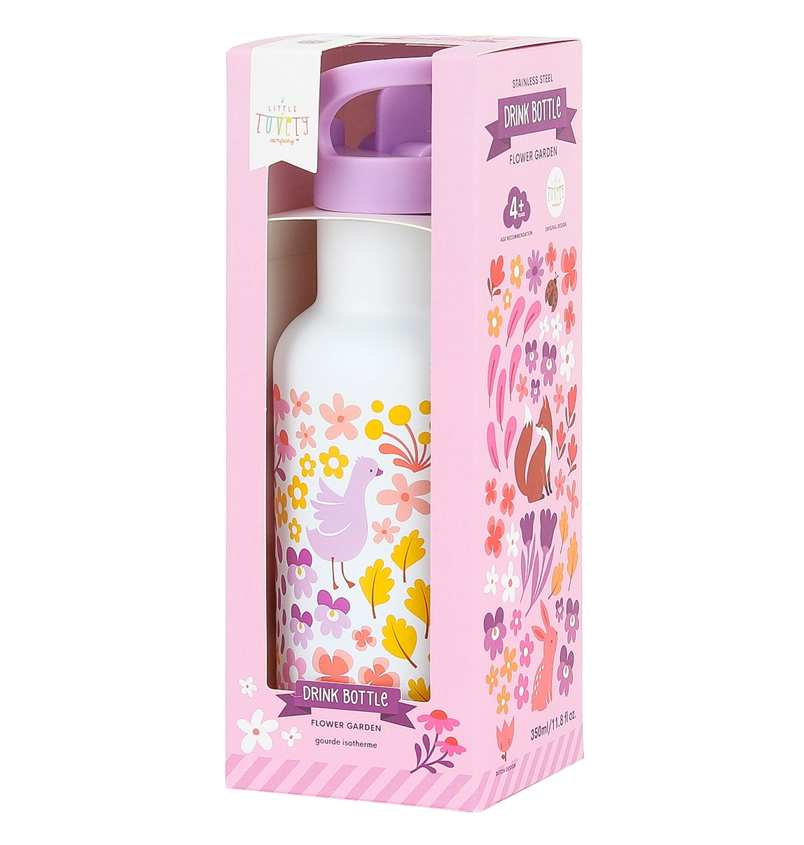 Roestvrijstalen drinkfles met een inhoud van 350 ml met een bloementuinmotief, ideaal voor kinderen en hun dagelijkse avonturen. Effectieve isolatie en een praktisch ontwerp maken drinken uit deze fles een echt plezier.
