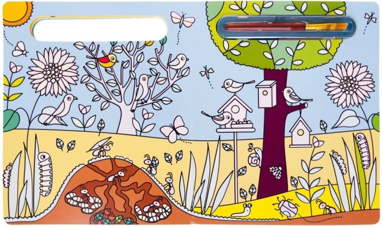 Dit boek met een stevige gelijmde kaft is een ideale keuze voor kleine schilderfans. Het bevat prachtige illustraties van tuindieren die wachten op jouw creativiteit. Dankzij de speciale technologie verdwijnen de kleuren na het drogen, zodat je keer op keer kunt schilderen.