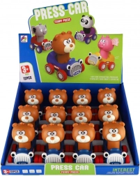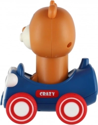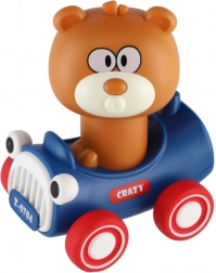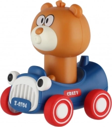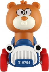Schattige knuffelbeer 'Druk en Rijd' van plastic met vliegwielsysteem. Gewoon drukken, loslaten en kijk hoe de beer vooruit gaat! Perfect voor de kleintjes, bevordert beweging en brengt plezier in beweging.