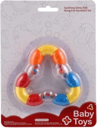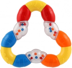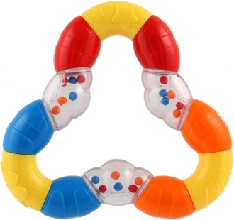 Lichtgewicht rammelaar in de vorm van een driehoek is ideaal voor de eerste spelletjes van baby’s. Flexibele kunststof voelt prettig aan, ligt gemakkelijk in de hand en dient tegelijkertijd als bijtring.