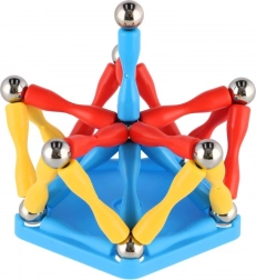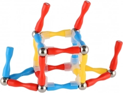 Kleurrijke plastic staafjes met magnetische uiteinden en metalen bolletjes zorgen voor snelle en sterke verbindingen in talloze vormen. Kinderen leren spelenderwijs principes van constructie en stabiliteit.