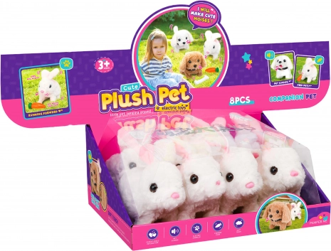 We presenteren een schattig interactief konijntje dat niet alleen beweegt, maar ook geluidseffecten maakt die leuk zijn voor kinderen. Dit konijntje zorgt voor urenlang plezier en vermaak.