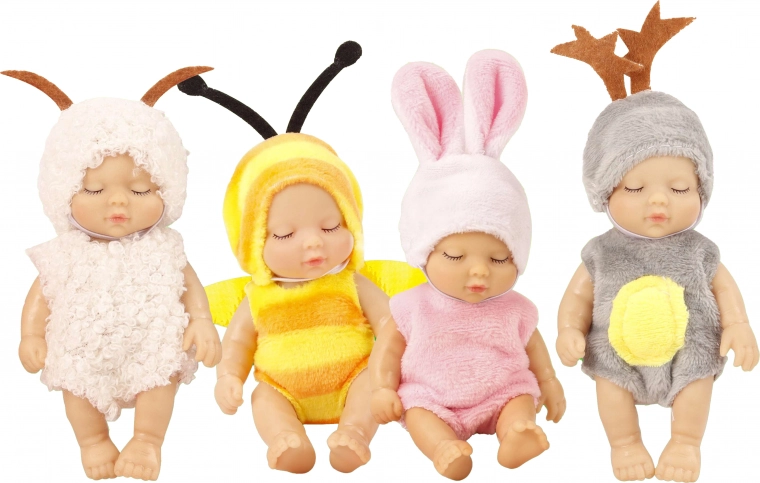 Breid je collectie uit met dit betoverende baby'tje van slechts 12 cm hoog. Elk stuk is zorgvuldig afgewerkt met aandacht voor detail, inclusief kleurrijke outfits met verschillende dierenmotieven. Het baby'tje is ideaal om mee te spelen of als decoratief element voor de kinderkamer.
