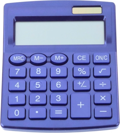 De elegante blauwe rekenmachine is een perfecte keuze voor dagelijks gebruik. Dankzij de compacte afmetingen past hij gemakkelijk in een lade, rugzak of aktetas. Door de combinatievoeding met batterij en zonnecel werkt hij betrouwbaar, zelfs bij minder licht.
