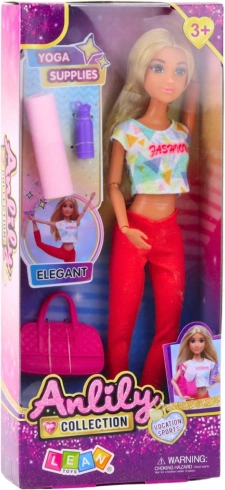 Anlily-pop met beweegbare ledematen, yoga-accessoires en stijlvolle kleding voor inspirerend rollenspel.