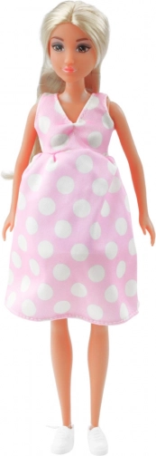 Pop Anlily Zwanger in Roze Jurk met Stippen, Lang Haar