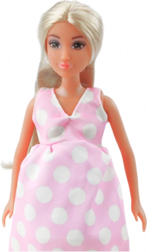 Pop Anlily zwanger is ideaal voor kinderen die van creatief spel en rollenspellen in het gezin houden. De stijlvolle roze jurk met witte stippen onderstreept prachtig haar rol als aanstaande moeder.