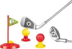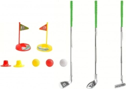 Deze kindergolfset is ideaal voor verschillende soorten spelletjes en wedstrijden. Het bevat drie verschillende golfclubs, drie gekleurde ballen (wit, rood, geel), twee basisplaten en twee holes met vlaggetjes. Het realistische uiterlijk en de hoogwaardige afwerking geven kinderen het gevoel echte golfers te zijn. De set is geschikt voor kinderen vanaf 3 jaar. Kan zowel alleen als met leeftijdsgenootjes worden gebruikt, wat gezonde competitie leert.