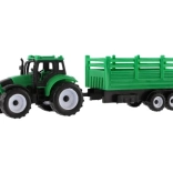 De tractor met aanhanger is een getrouwe kopie van echte landbouwmachines en zal elke kleine boer blij maken.