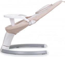 De schommelstoel biedt 5 schommelsnelheden en een timer van 8, 15 en 30 minuten. Kalmerende melodieën dragen bij aan een comfortabele rust of slaap. De schommelstoel kan ook worden bediend met een afstandsbediening. Voeding kan via AC, DC adapter of met 4 stuks AA-batterijen.
