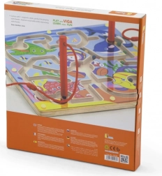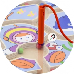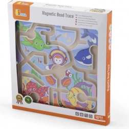 Het magnetische stokje leidt de knikkers door het doolhof en traint op een natuurlijke manier de greep, oog-handcoördinatie en het geduld bij het uitvoeren van taken.