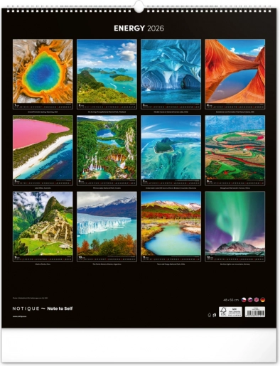Wandkalender Energie 2026 is de perfecte aanvulling voor uw huis of kantoor. Het bevat grootformaat foto's van natuurlijke landschappen uit exotische landen.