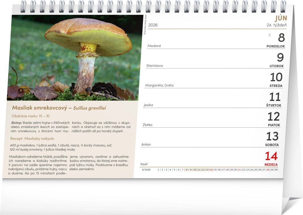 Ontdek diverse soorten boleten in deze zorgvuldig samengestelde kalender, aangeboden door expert en mycoloog Jaroslav Malý. Elke pagina is gevuld met informatie over hun groei, ideale omgeving en gebruik in de keuken samen met gezondheidseffecten.