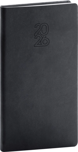 Elegante zakagenda in zwarte kleur voor het jaar 2026 biedt een wekelijkse planner in verschillende talen, een praktische kalender en ruimte voor notities.