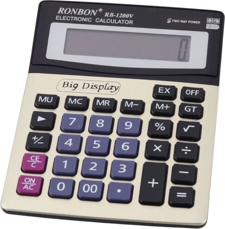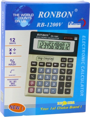 De Ronbon RB-1200V is een moderne rekenmachine die geschikt is voor elk kantoor of huishouden. Dankzij het grote 12-cijferige LCD-display en de duidelijk gemarkeerde knoppen biedt hij comfort, zelfs bij langdurig gebruik. Het contrasterende kleurontwerp met de opdruk “Big Display” zorgt voor een professionele uitstraling.
