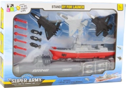 Deze unieke militaire set biedt kinderen de kans om plezierige zee- en luchtgevechten te beleven. Gemaakt van hoogwaardig kunststof, bootst het militaire voertuigen na in een eenvoudige kindervorm. Met plekken voor raket- en torpedomontage kunnen kinderen zich verheugen op nog meer speelactie.