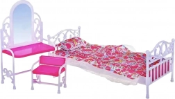 De meubelset voor poppen biedt veel speelmogelijkheden – het kind kan de poppen in bed leggen, de ochtendverzorging uitvoeren of de pop klaarmaken voor een bal. Spelen met het meubilair ontwikkelt verbeeldingskracht, creativiteit en fijne motoriek en leert het kind zorgen voor orde en ruimte. Het meubilair is licht en gemaakt van duurzaam en veilig plastic. Geschikt voor de meeste poppen van het type Barbie en vergelijkbaar (ca. 29 cm hoog).