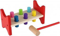 Deze tijdloze houten speelgoedklassieker ondersteunt natuurlijk leren door middel van spel. Kinderen slaan met het hamertje de kleurrijke pinnetjes in de gaten, waarmee ze precisie, ritme en geduld trainen. De stevige houten bank met veilig afgeronde randen zorgt voor een lange levensduur en veilig gebruik.