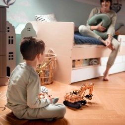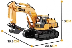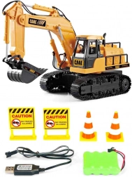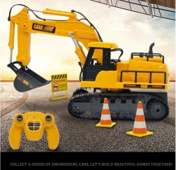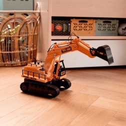 Deze op afstand bestuurbare graafmachine is een perfecte imitatie van een echte machine op schaal 1:24. Dankzij de intensieve kleuren en zeer gedetailleerde afwerking verandert je kamer moeiteloos in een bouwplaats. De besturing gebeurt met een 2,4 GHz afstandsbediening. Geschikt voor solo-plezier én spelen in een groep met ouders of leeftijdsgenoten. De set bevat ook 2 waarschuwingsborden en 2 kegels, wat het spel nog aantrekkelijker maakt.