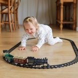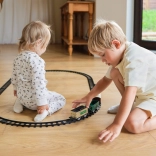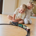 Deze traditionele stoomtreinset biedt kinderen een authentieke treinervaring. De locomotief heeft een brandende koplamp en realistische geluiden die de spelbeleving versterken. De rails klikken eenvoudig in elkaar, zodat je in no-time een cirkel met een diameter van 74 cm of een ovaal van 134 × 74 cm bouwt.
