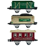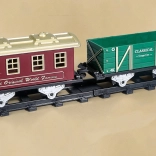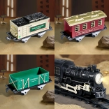 De set bevat een passagiersrijtuig, een kolenwagon en een goederenwagon voor diverse vervoersverhalen.