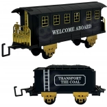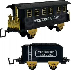 Er zijn twee gedetailleerde wagons inbegrepen – een kolenwagon en een personenrijtuig. Ze koppelen eenvoudig en rijden soepel over de baan.