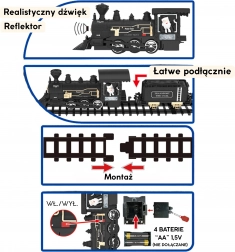 De locomotief met schijnwerper en authentieke stoomtreingeluiden creëert een meeslepende sfeer en trekt kinderen het spel in.