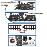De klassieke WOOPIE stoomtrein bootst een echte treinset natuurgetrouw na – van de locomotief tot de kolenwagon en het personenrijtuig. De brandende koplamp en realistische geluiden versterken de sfeer van elke rit, terwijl de eenvoudige klikrails een snelle montage van een circuit met een omtrek van 403 cm mogelijk maken.
