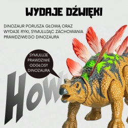 • De dinosaurus beweegt voorwaarts en achterwaarts en nabootst de beweging van een echte stegosaurus;