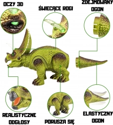 - De dinosaurus beweegt vooruit en achteruit, en bootst de loop van een echte Triceratops na