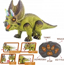 Ontdek de prehistorische wereld met de op afstand bestuurbare Triceratops van Woopie! Met realistische details, lichtgevende hoorns en ogen en een brullende bek ziet hij eruit als een echte dinosaurus. De Triceratops beweegt vooruit en achteruit, danst en vecht – allemaal bediend met een handige afstandsbediening.