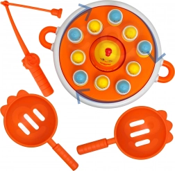 - Inhoud van de set: basis met muziek en rotatie, 10 magnetische kuikentjes, 2 schepjes, 1 hengel, 1 groter afneembaar kuiken, doos