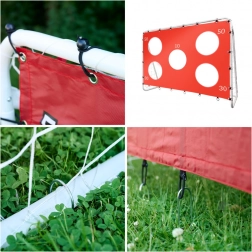 Het doel heeft verschillende openingen in het precisienet, die van punten zijn voorzien, wat de schiettechniek bevordert en sportieve rivaliteit aanmoedigt. Mis de kans niet om de voetbalsfeer naar je tuin te brengen met de juiste afmetingen voor kinderen en weerbestendige duurzaamheid.