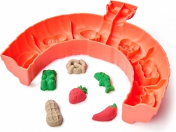 Meng kleuren en maak groente, salami en gekke ingrediënten. Kinetisch zand behoudt zijn vorm, snijdt geweldig en droogt nooit uit.