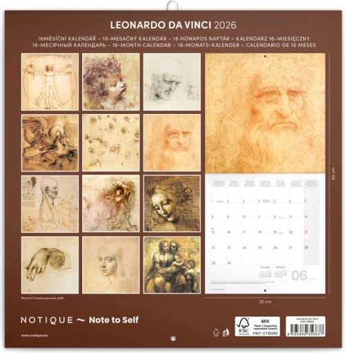 Ontdek de praktische notitiecalender met twaalf werken van Leonardo da Vinci. Overzichtelijke kalender, maanfasen en ruimte voor notities maken van deze kalender een ideale hulp voor jouw jaar.