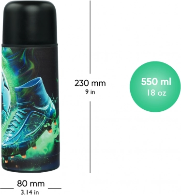 Deze thermosfles van het merk BAAGL is uitgerust met een schroefdop die ook dient als drinkbeker. Met een inhoud van 550 ml en een gewicht van 367 g is hij ideaal voor leerlingen van de onderbouw van de basisschool. De stijlvolle fles ziet er niet alleen geweldig uit, maar is ook zeer praktisch.