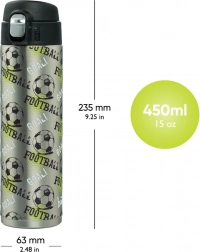 Deze geweldige thermofles is dankzij de intuïtieve opening en het praktische siliconen tuitje gemakkelijk te gebruiken voor kinderen vanaf jonge schoolleeftijd. De inhoud is 450 ml en de fles is verkrijgbaar in verschillende speelse designs die afgestemd kunnen worden op andere schoolbenodigdheden.