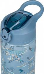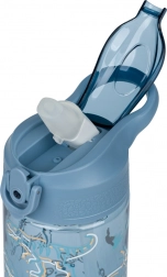 De fles is uitgerust met een veilig opklapbaar deksel en een geïntegreerd siliconen drinktuitje.