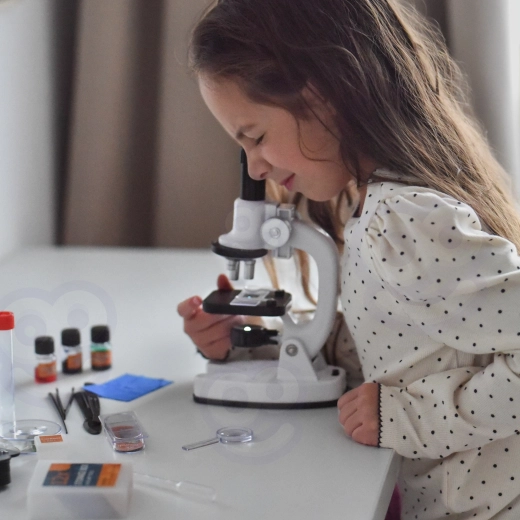 Deze compacte microscoop is een perfecte keuze voor het eerste thuiskabinet. Dankzij drie vergrotingsniveaus 200x / 600x / 1200x, de ingebouwde LED-verlichting en een draaibaar kleurenfilter zien kinderen eenvoudig de structuren van plantencellen, vezels en fijne details van kleine monsters.