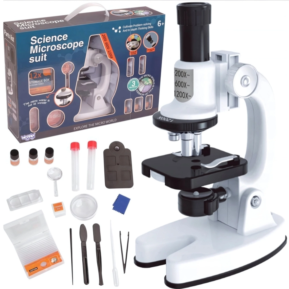 De digitale microscoop van Woopie biedt een compleet laboratorium voor kleine onderzoekers vanaf 6 jaar. Met drie niveaus van vergroting - 200x, 600x, 1200x, en een stabiele constructie van hoogwaardig plastic, kunnen kinderen de fascinerende details van de omringende wereld overwinnen. Dankzij de hoge kwaliteit HD optiek en de adapter voor smartphones maakt het foto's maken en ontdekkingen documenteren mogelijk.