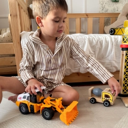 Verander de kamer in een bouwplaats met de WOOPIE 1:16 laadschop. Authentieke details, een transparante cabine en een functionele arm met bak maken scheppen en kiepen mogelijk zoals op een echte bouwplaats. Lichten en geluiden geven het spel extra sfeer en de frictieaandrijving zorgt voor soepel rijden met slechts een duwtje.